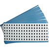 Realizzati in resistente vinile B-708, i nostri marcatori per fili e cavi serie CAB sono anche autolaminanti, il che li rende ideali per tutta una serie di applicazioni in interni ed esterni. I marcatori per fili e cavi sono disponibili in nero su bianco lucido e resistono ad olio, acqua e solventi non molto aggressivi. I marcatori sono forniti su un foglio da 101,6 mm x 228,6 mm e possono essere rifilati per cavi di diametro più piccolo. I marcatori sono lunghi 88,9 mm; per ordinare metà marcatore, scrivere 44,45 mm dopo il codice articolo. I fogli standard contengono 18 marcatori.
