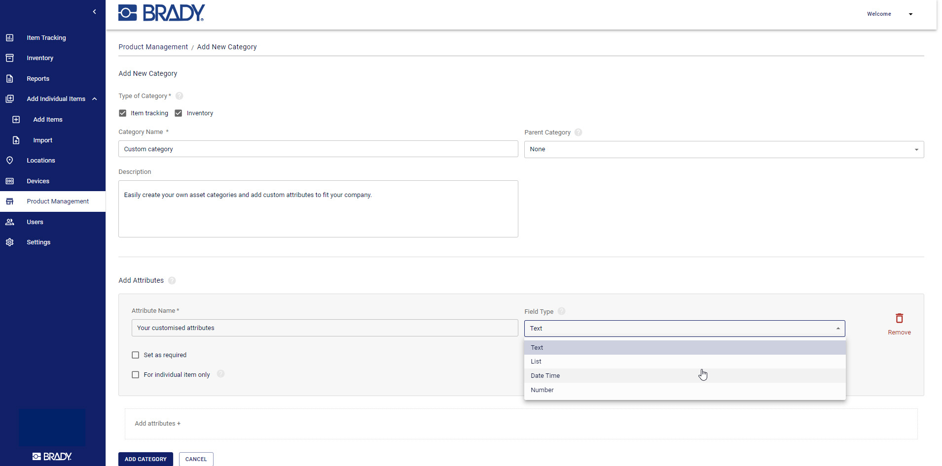 Importa facilmente i dati esistenti e imposta le categorie di prodotti, risorse e articoli, le condizioni degli articoli e le posizioni che corrispondono ai lettori RFID fissi. Una volta inserite, le etichette con i dati appaiono in menu a discesa per categoria, per aumentare ulteriormente la velocità di impostazione.